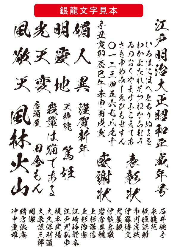 龍が天を駆けるような力強さと流麗さ。圧倒的な存在感を放つタイトル向け書体。