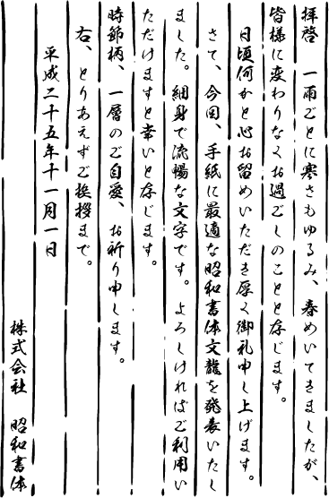 | 書体シミュレーション 昭和書体取扱サイトにて字形の確認ができます。 |