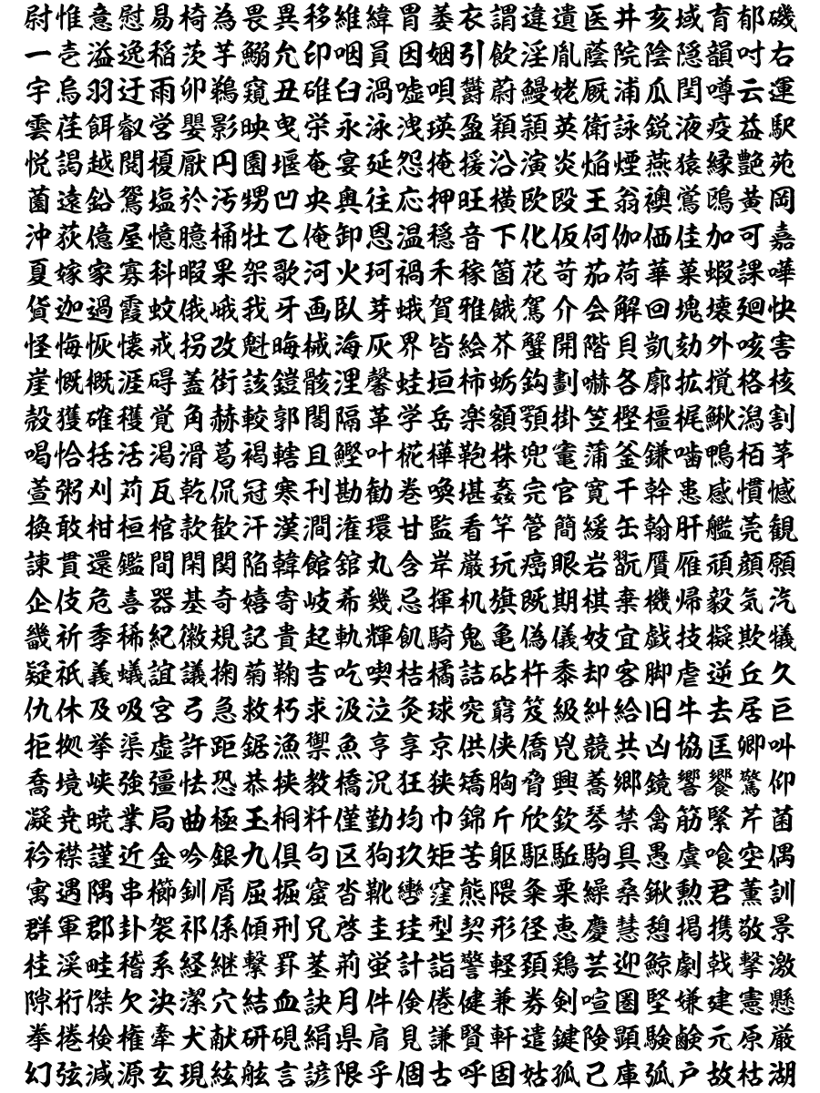 | 栄泉楷書体全字形一覧 | |||||||||||||||||||||||||||||||||||||||||||||||||||||||||||||||||||||||||||||||||||||||||