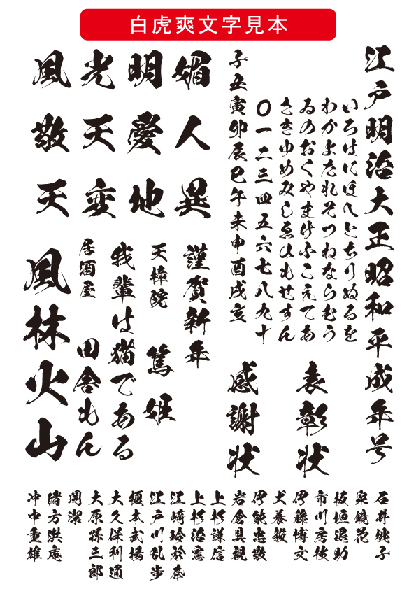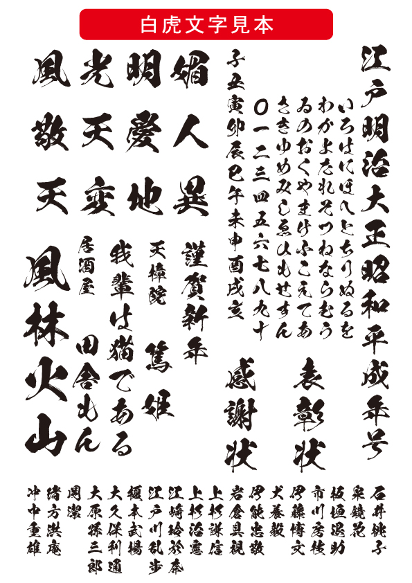 白虎 四字熟語の『為虎添翼』をコンセプトにし、力強く、柔軟な字を目指し開発