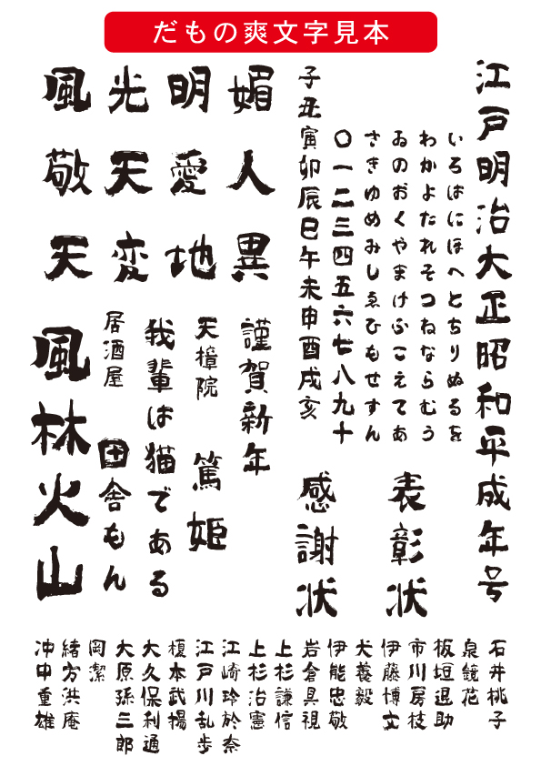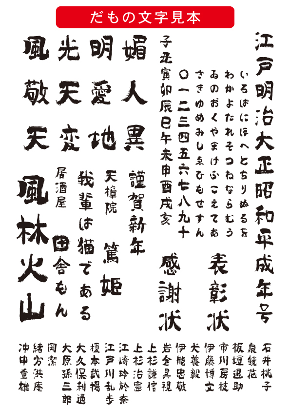 だもの 柔らかく親しみやすい。へたうま文字として人気爆発