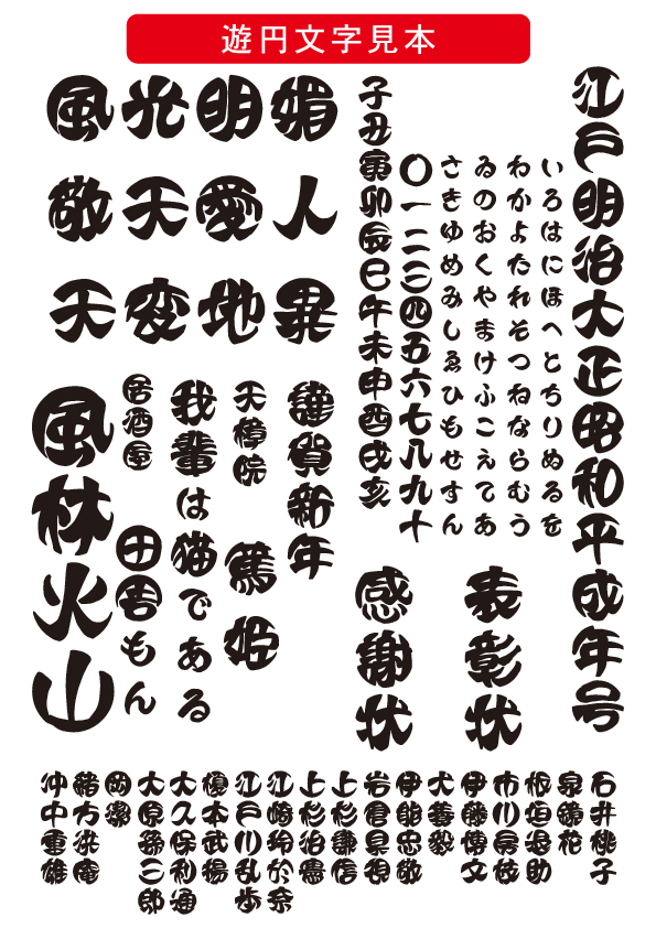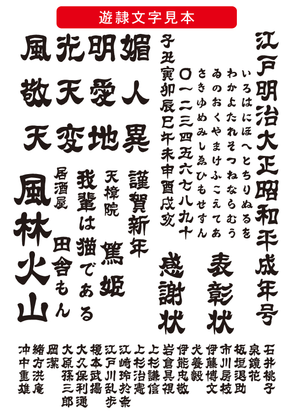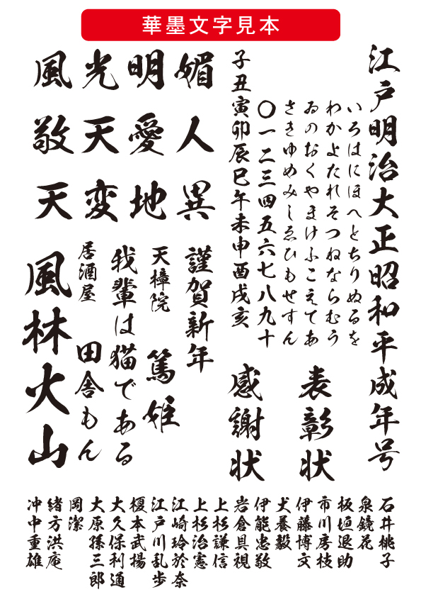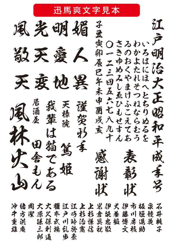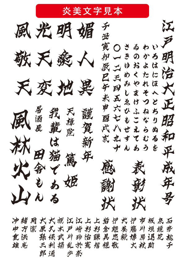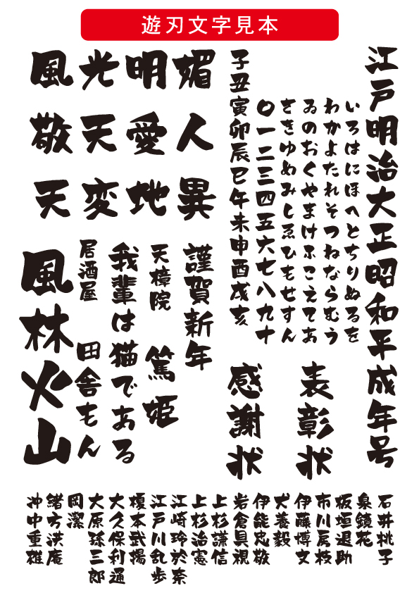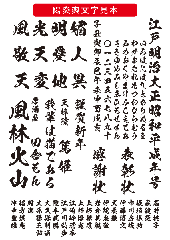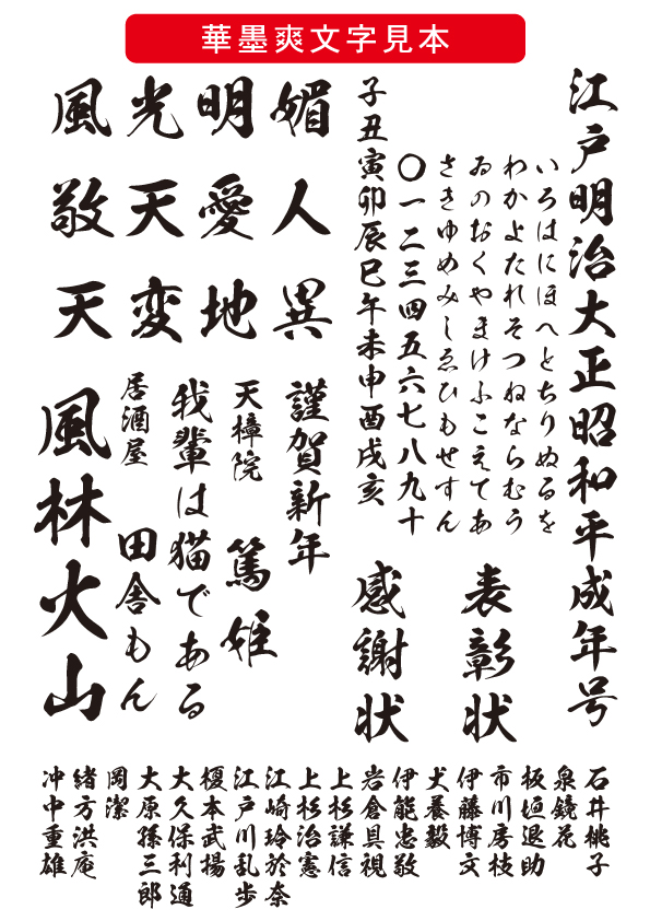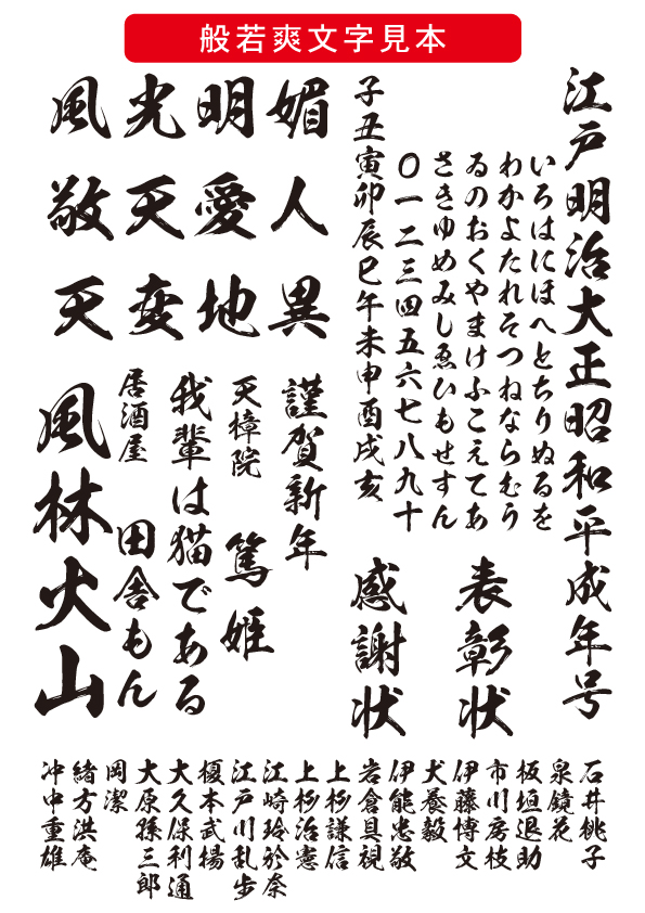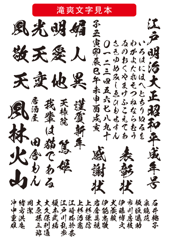 看板制作、ガラス彫刻、木工、金属加工、ステッカー制作など、 "現場で使える筆文字フォント"として高い評価を得ています。