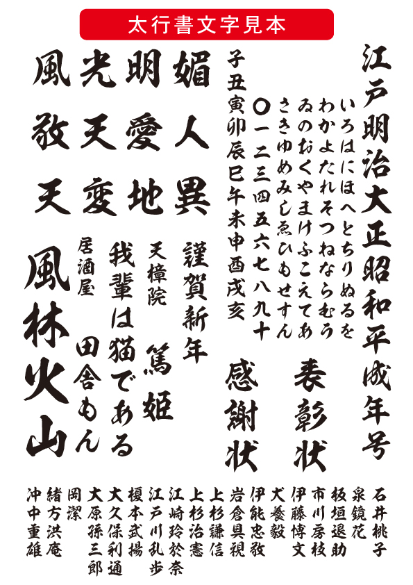 豪快で骨太な筆圧が魅力。武骨さと威厳を兼ね備えた、男気あふれる書体。