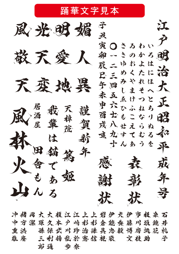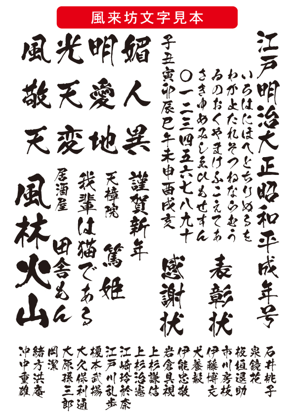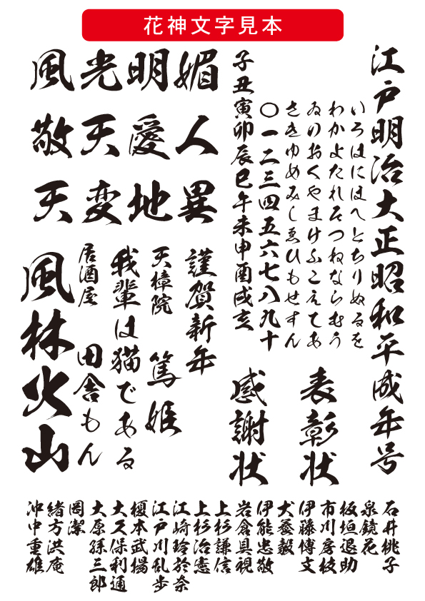 ■中に新作8書体「花風・はなかぜ」「華龍・かりゅう」「踊華・ようか」「バサころ」「泥姫・どろひめ」「豪爺・ごうじい」「だもの」「炎美・えんび」も同時リリース。**