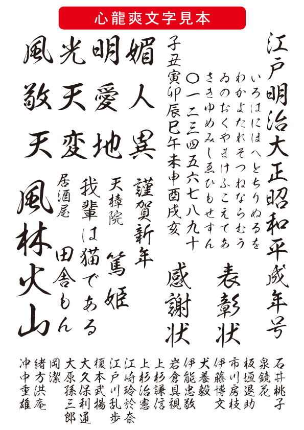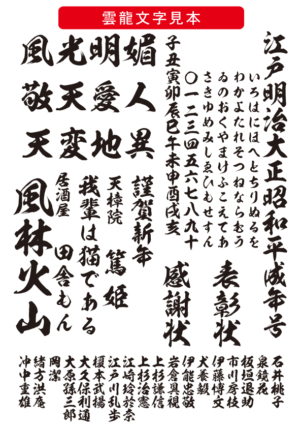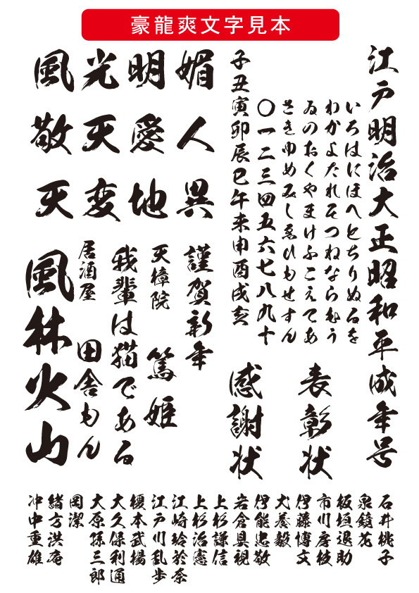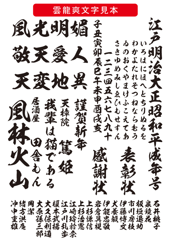 龍が天を駆けるような力強さと流麗さ。圧倒的な存在感を放つタイトル向け書体。