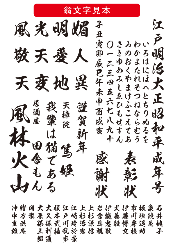 翁 筆文字として、落ち着いて深い趣のある書体ができました。敬って『翁』と命名