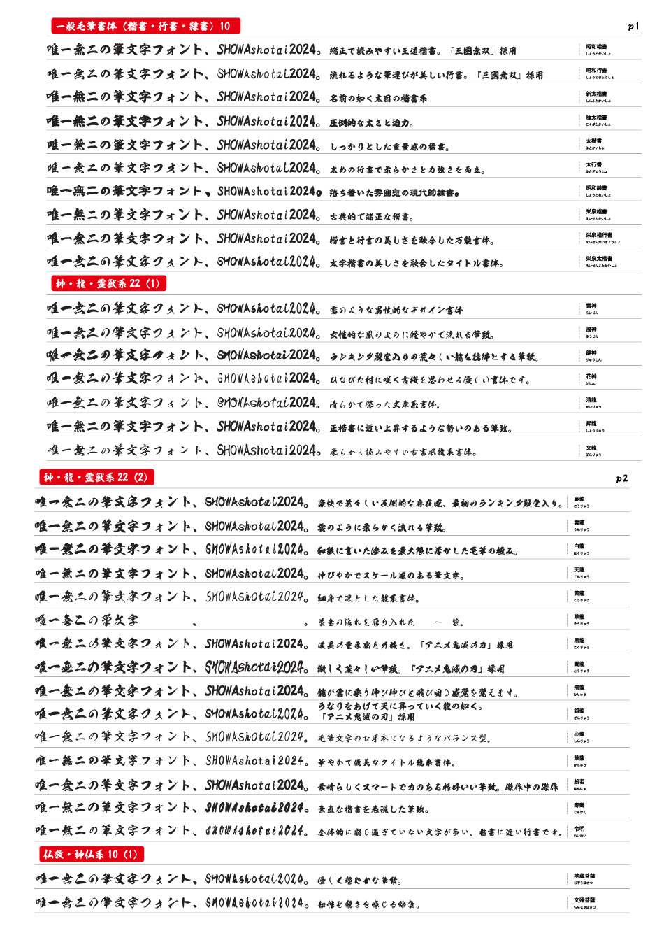 日本の筆文字文化を未来へつなぐフォントメーカー「昭和書体」(代表:坂口茂樹)は、これまでパッケージ販売を中心に展開してきた筆文字フォント約107書体について、1書体から購入できるダウンロード販売キャンペーンを開始いたします。