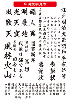 令明 全体的に崩し過ぎていない文字が多い、楷書に近い行書です。