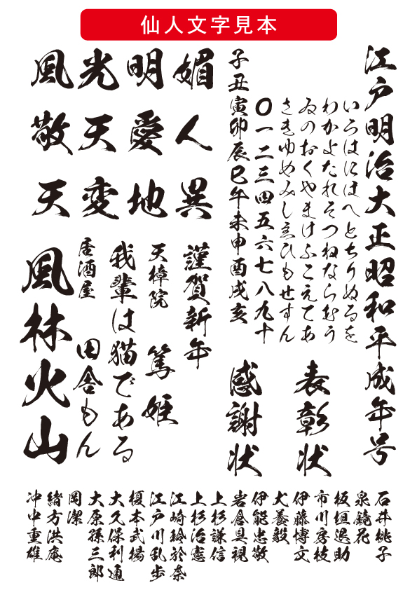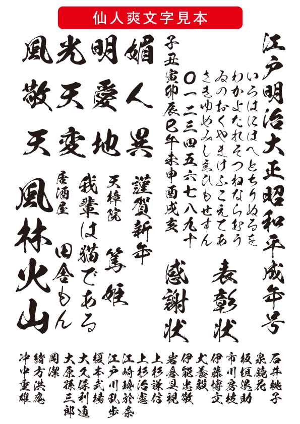 仙人 筆文字の仙人になるべく洗練され特有の「かすれ」が再現された高解像度書体。