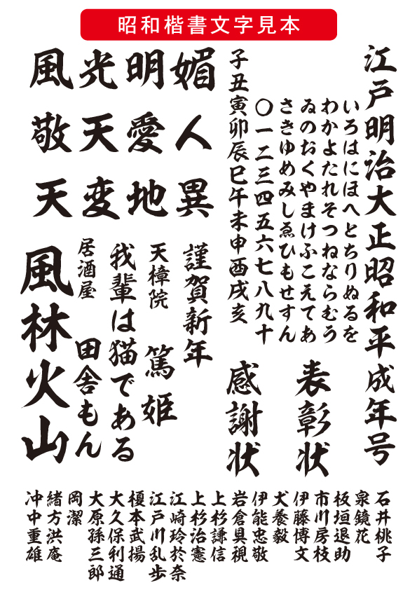 昭和楷書 端正で読みやすい王道楷書。「三國無双」採用