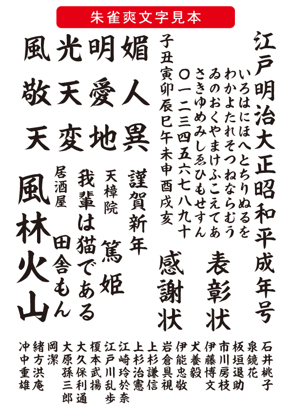 朱雀 正楷書に近いしっかりとした感じの書体です。